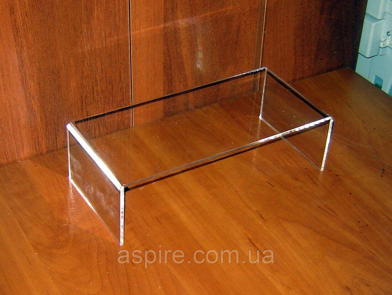 Підставка П-подібна широкого спектра застосування. У цьому разі позиціюється як підставка під портфель або сумку. Матеріал — оргскло (акрил) 4 мм прозоре.